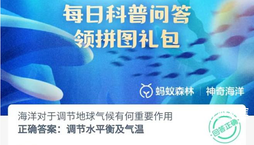 2 、通过大量吸收和释放热量,海洋答 :调节水平衡及气温。对于调节地球